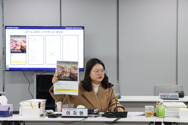[금요저널] 경기도의회 교육행정위원회 이자형 의원은 20일 경기도교육청 총괄 행정사무감사에서 “경기도교육청 남부청사 직원들이 ‘고구마켓’을 통해 식권을 사고팔며 복무규칙 위반을 감수하는 현실은 교육청의 무책임이 초래한 결과”고 지적했다.