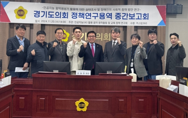 [금요저널] 경기도의회 미래과학협력위원회 김철현 의원이 회장직을 맡고 있는 경기도의회 의원 연구단체는 20일 경기도의회 미래과학협력위원회 회의실에서 ‘인공지능 음악생성기 활용에 대한 실태조사 및 장애인의 사회적 참여 방안 연구’ 정책연구용역 중간보고회를 개최했다.