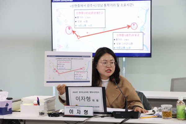 [금요저널] 경기도의회 교육행정위원회 이자형 의원은 지난 20일 경기도교육청 총괄 행정사무감사에서 신현·능평 지역 중학생들의 통학 여건 개선을 위한 고교 학군 조정의 필요성을 강력히 제기했다.