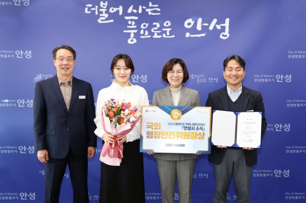 김보라 안성시장은 “이번 ‘안성시 소식’의 수상은 시민들과 함께 만들어가는 도시를 구현하기 위한 노력의 산물이라고 생각한다”며 “앞으로도 안성시민과 ‘안성시 소식’ 구독자 여러분의 목소리에 귀 기울여 기대에 부응하는 안성시가 되겠다”고 전했다.