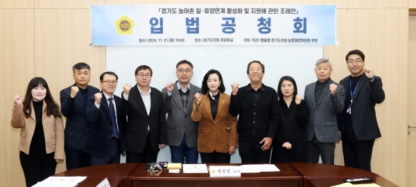 [금요저널] 경기도의회 부의장 정윤경 도의원은 21일 경기도의회 정담회실에서 ‘경기도 농어촌 일·휴양연계 활성화 및 지원에 관한 조례안’ 입법공청회를 개최했다.