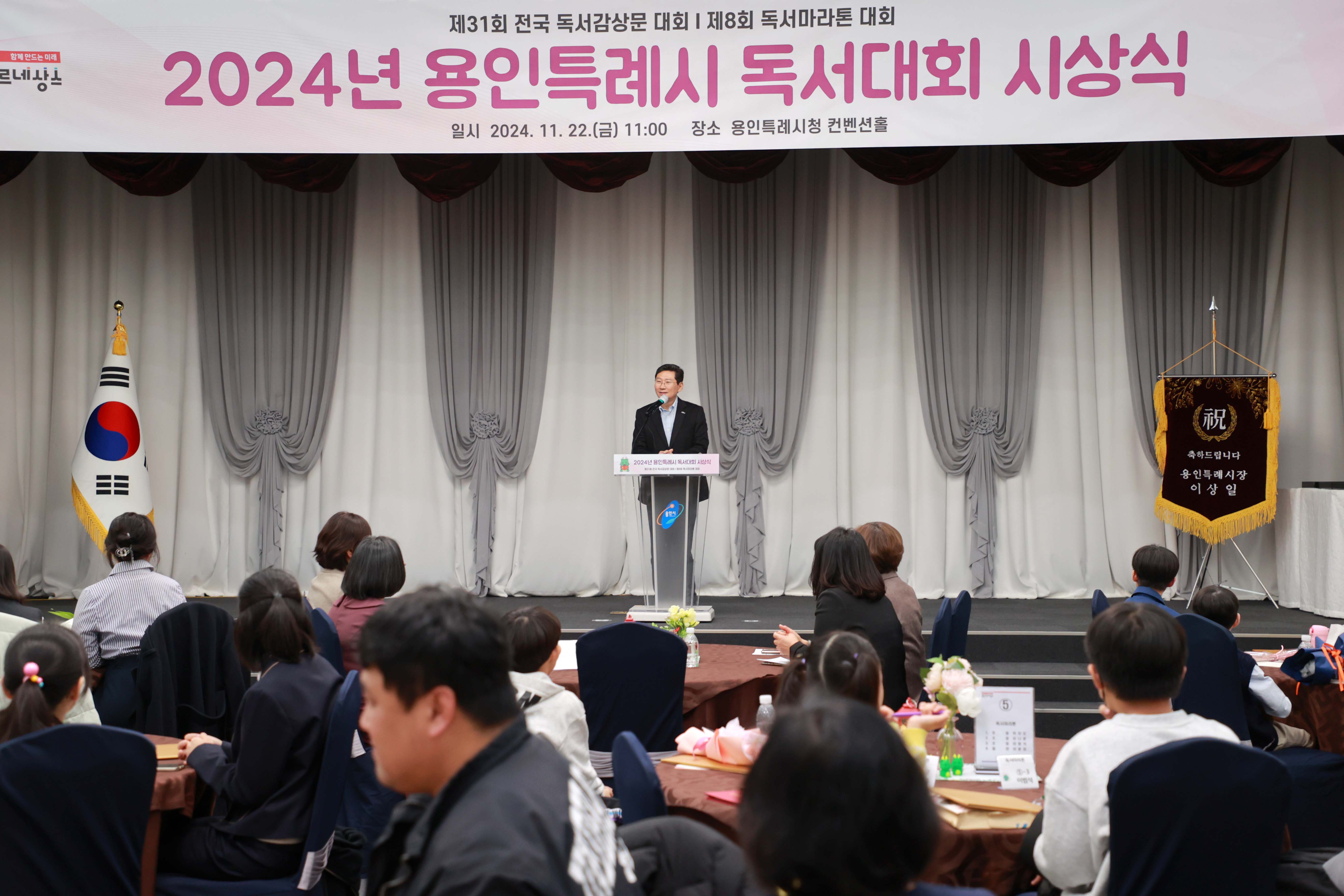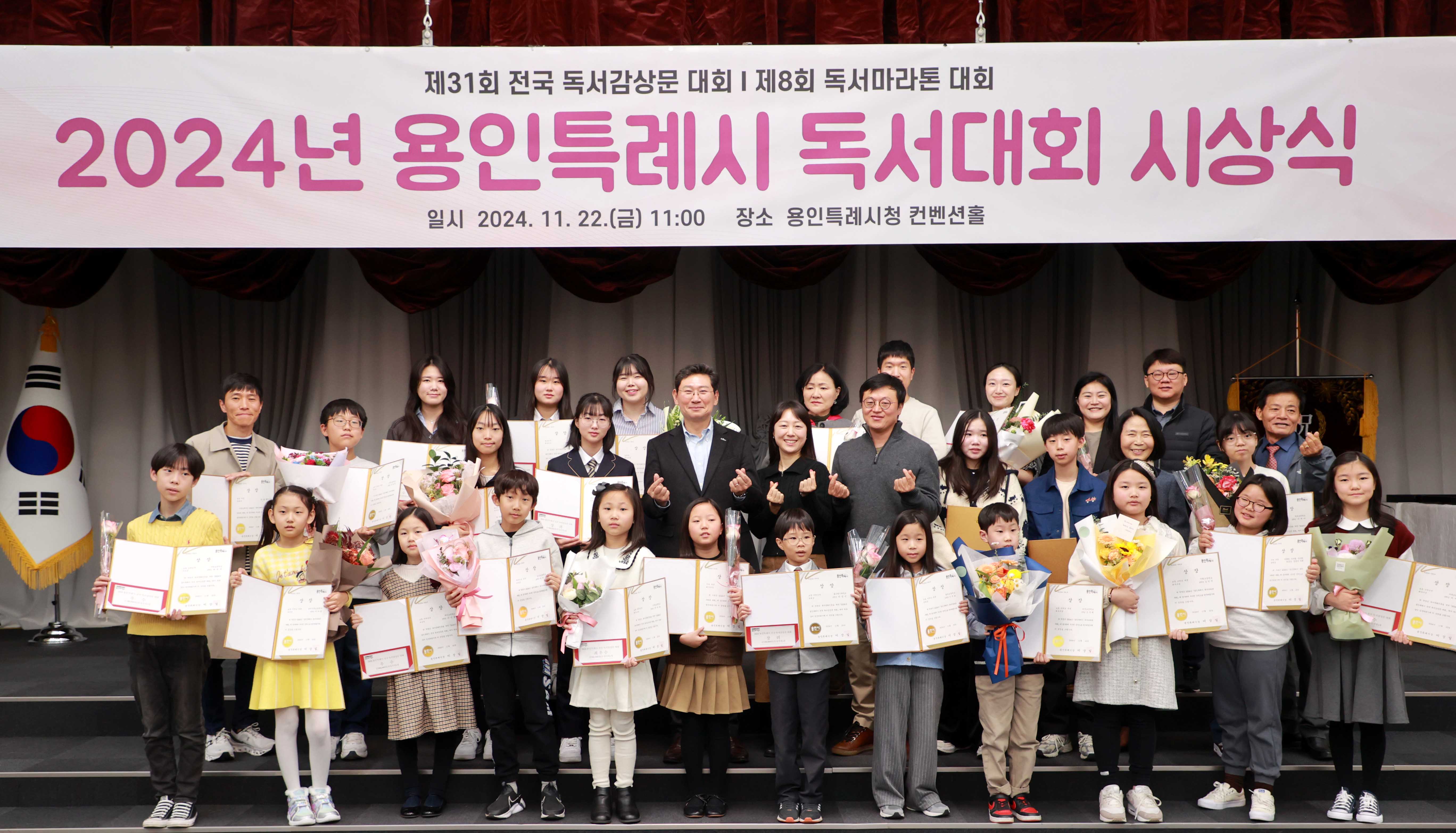 용인특례시(시장 이상일)는 22일 시청 컨벤션홀에서 전국 독서감상문 대회 수상자와 독서마라톤 대회 우수 완주자에 대한 시상식을 개최했다.