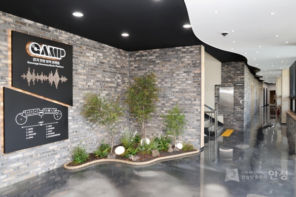 경기안성뮤직플랫폼은 기존 문예회관 1층을 리모델링한 공공시설로 악기 정보와 지식, 체험 등을 제공하는 악기도서관을 비롯해 녹음실과 회의실, 멀티미디어실, 합주실, 공연장 등 다양한 음악 활동을 뒷받침하는 공간으로 구성됐다.