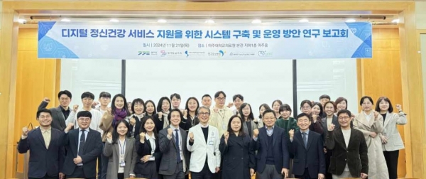 이날 최종보고는 연구책임자인 아주대학교 홍창형 교수가 ‘디지털 정신건강 서비스 지원을 위한 시스템 구축 및 운영 방안 연구’라는 주제로 연구용역 추진 결과를 발표했다.