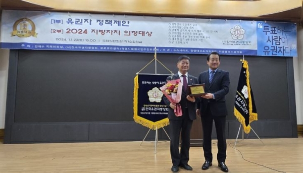 [금요저널] 경기도의회 미래과학협력위원회 김상곤 의원은 지난 23일 국회의원회관 회의실에서 열린 ‘제7회 정명 대상’ 2024 지방자치 의정대상 부문 대상을 수상했다.