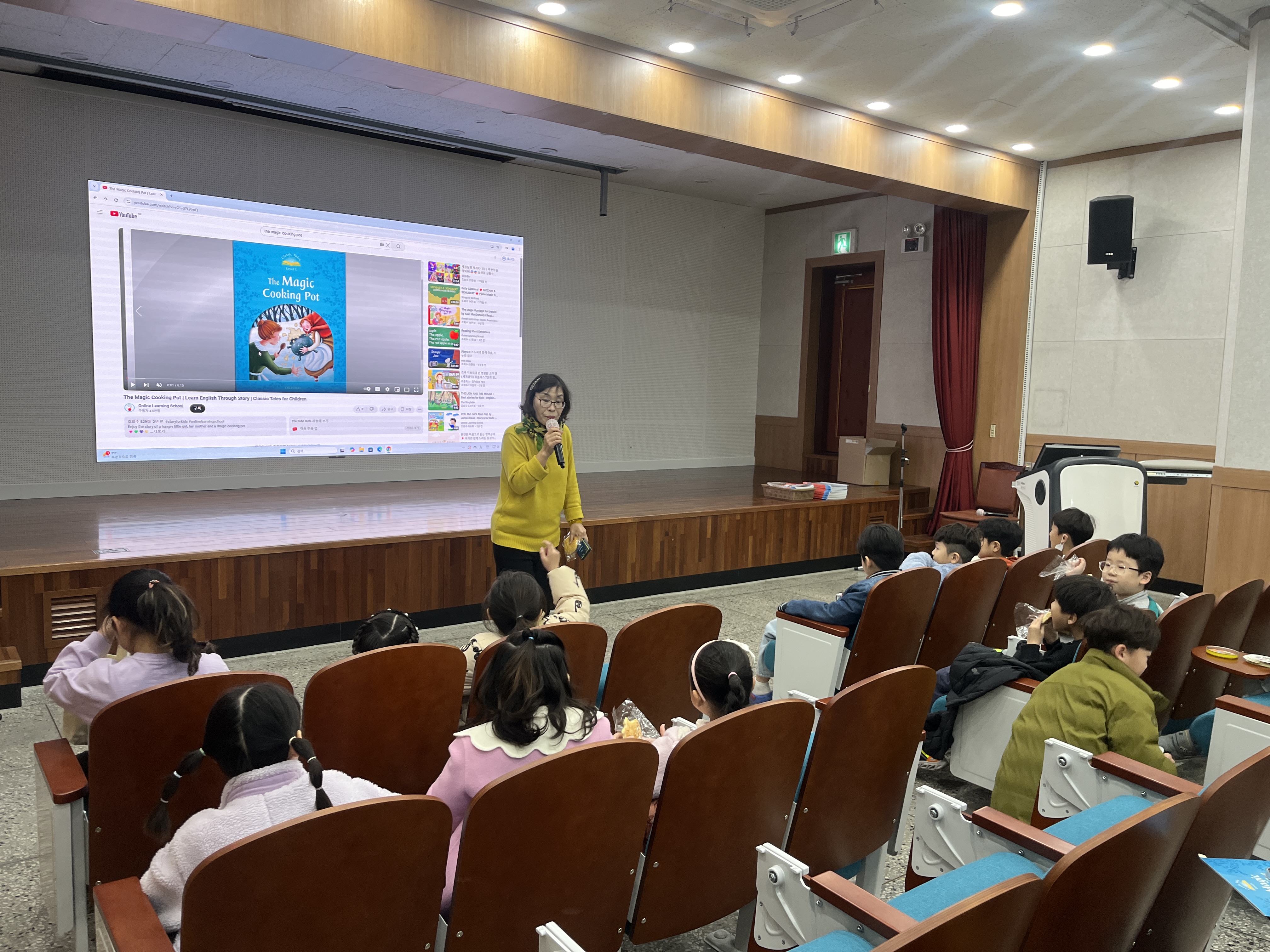□ 구미도서관 늘봄학교는 금오초등학교와 협력하여 진행되는 프로그램으로, 9월 1일부터 11월 24일까지 매주 일요일 10시에 총 12회에 걸쳐 운영되었다. 친구들과 함께 영어 동요를 따라 부르고, 영어 그림책을 읽는 등 실생활에 도움이 되는 영어 회화 수업으로 구성되어 학부모들에게 큰 호응을 얻었다.