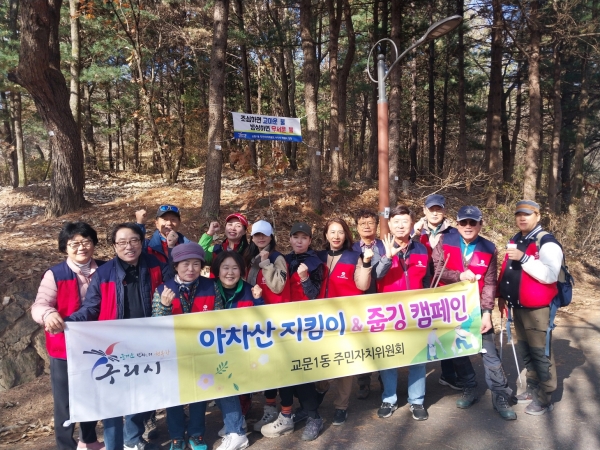 [금요저널] 구리시 교문1동주민자치위원회는 지난 23일 아차산 일대에서 쓰레기 줍깅과 산불 예방 캠페인을 전개했다.