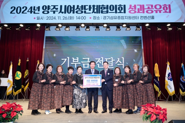 이날 행사는 △양주시여성단체협의회 및 소속 9개 여성단체 1년간 활동 영상 상영, △기부금 전달, △여성 발전 유공 표창, △감사패 전달, △화합의 시간순으로 진행했다.