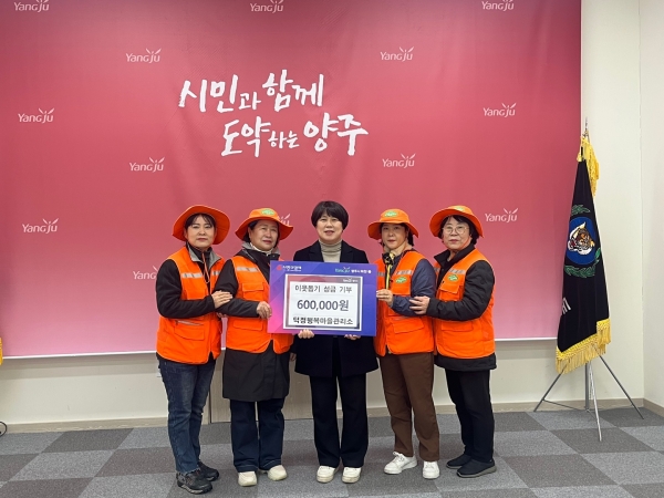 [금요저널] 양주시 덕정행복마을관리소가 ‘2024 경기 행복마을관리소’우수사례 선정으로 받은 시상금과 사무원 기부금을 합친 60만원을 지난 27일 회천1동행정복지센터에 전달했다.