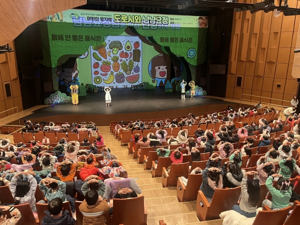 센터 등록 어린이집 및 유치원 56개소, 3~6세 어린이 약 1천 명이 관람한 이번 공연은 어린이들의 잘못된 식습관을 개선하고 건강한 식생활 실천을 유도하고자 마련했다.