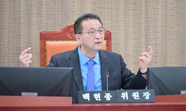 [금요저널] 경기도의회 도시환경위원회 백현종 위원장이 지난 11월 25일부터 27일까지 3일간 이어진 ‘2025년도 경기도 본예산 및 기금운용계획안’에 대한 상임위 예산심사에서 위원장으로서의 날카로운 분석과 예리함이 돋보였다.