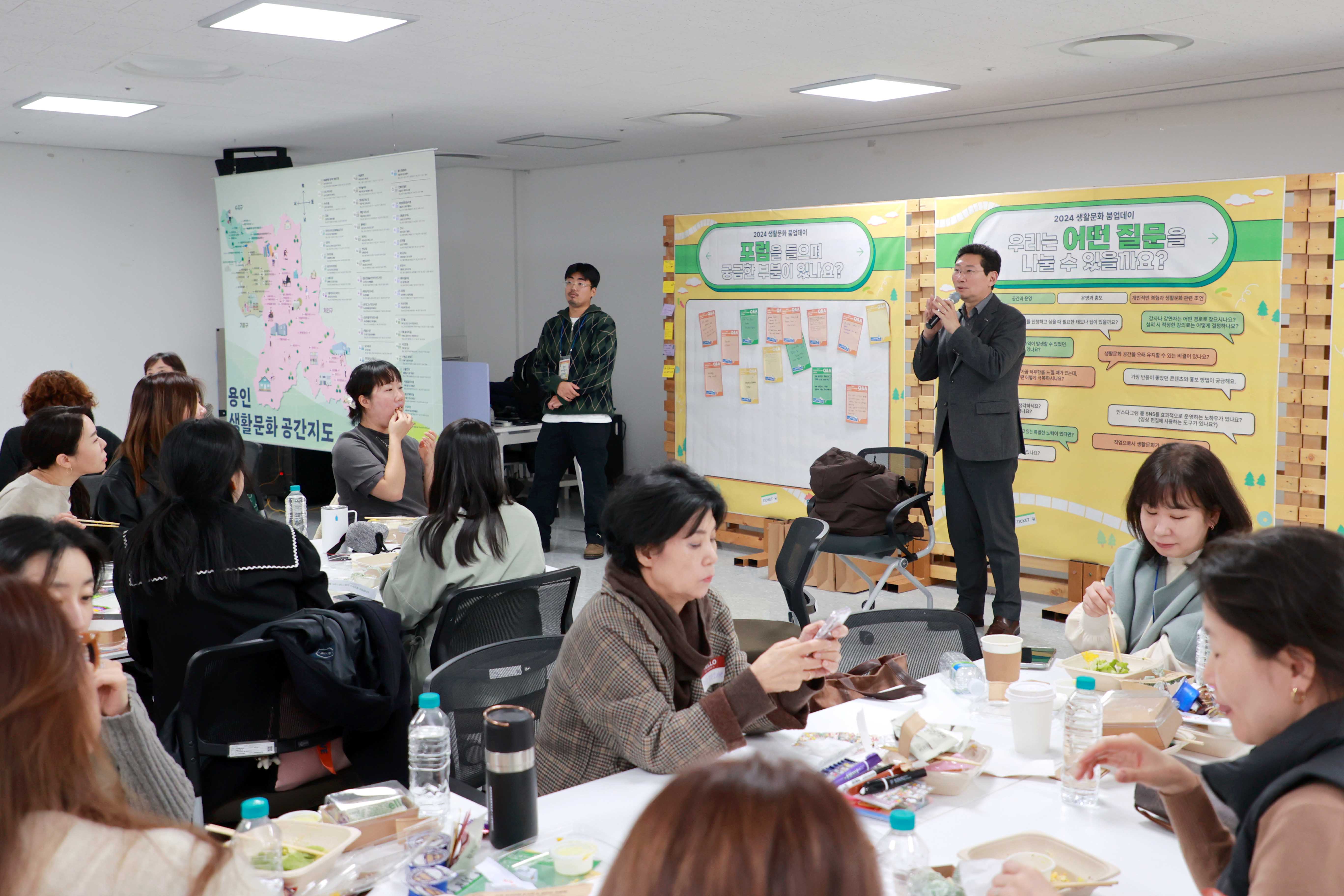 이 시장은 문화 활동가, 기획자들이 네트워킹을 통해 소통하는 현장도 찾아 "여러가지 좋은 기획으로 용인의 문화품격을 높여주시는 여러분께 감사의 뜻을 전한다"며 "내년에도 의미 있는 활동을 많이 해주시기 바라고 시도 계속 적극 지원하겠다"고 말했다.