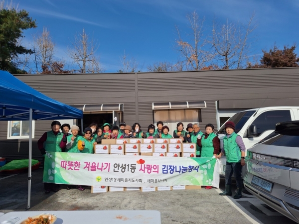 [금요저널] 안성1동 새마을부녀회에서는 지난 3일 안성1동 행정복지센터 주차장에서 어려운 이웃을 돕기 위해 사랑의 김장나눔 행사를 실시했다 이번 행사는 새마을부녀회 회원 모두가 함께 참여해 지난 9월부터 직접 재배한 김장배추를 수확부터 재료 손질 후 김장담그기까지 정성을 다했다.
