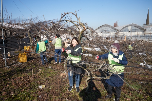 이어 비가림 시설의 파손 상태를 확인하고 철거 작업을 실시했으며 쓰러진 배나무 등의 복구 작업을 도왔다.