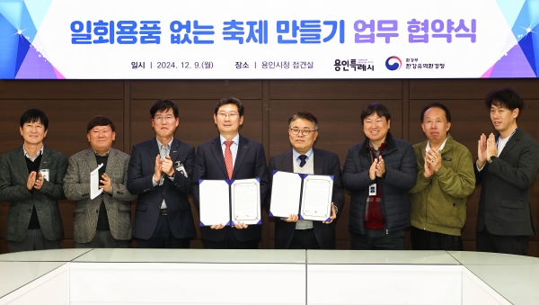 [금요저널] 용인특례시는 9일 시장 접견실에서 한강유역환경청과 ‘일회용품 없는 축제 만들기’를 위한 업무협약을 체결했다고 10일 밝혔다.