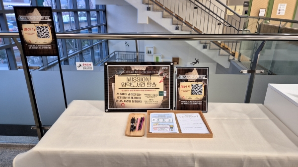 22일까지 운영되는 이번 프로그램은 방 탈출을 테마로 도서관 내부에 숨겨진 문제를 풀며 6번째 미션을 SNS에 인증하면 추첨을 통해 커피쿠폰 또는 조아용 기념품을 증정한다.