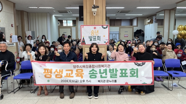 [금요저널] 양주시옥정종합사회복지관이 지난 6일 복지관 온누리홀에서 ‘2024 평생교육 프로그램 송년발표회’를 개최하며 한해를 뜻깊게 마무리했다.