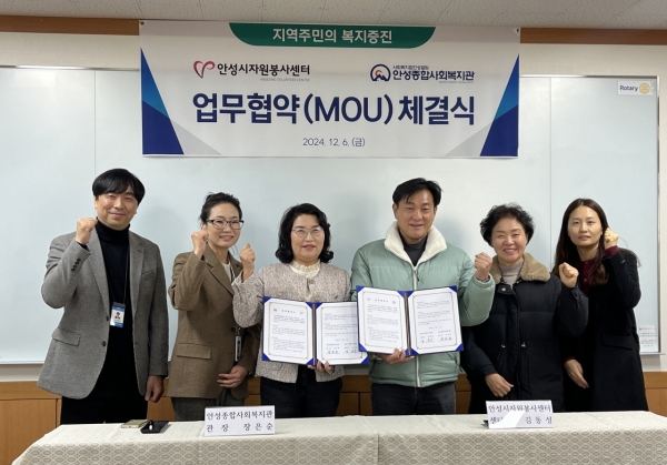 [금요저널] 안성종합사회복지관은 12월 6일 안성시자원봉사센터와 주민의 복지증진을 위한 체계적이고 통합적인 안전망 구축을 목표로 업무협약을 체결했다.