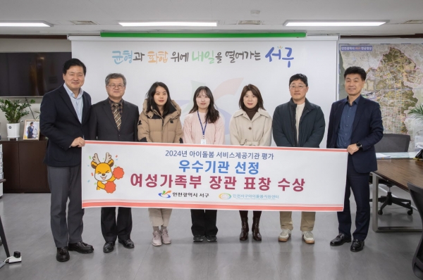 [금요저널] 인천 서구는 지난 5일 여성가족부 및 한국건강가정진흥원 주관 ‘2024년 아이돌봄서비스 소통의 날’ 행사에서 아이돌봄 서비스제공기관 평가 ‘우수기관’ 으로 선정되어 장관상을 수상했다고 밝혔다.