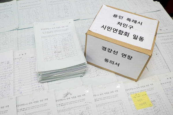 이 동의서에는 ‘경강선 연장’을 희망하는 2만 1000여 처인구 시민의 이름과 주소 등이 적혀있다.
