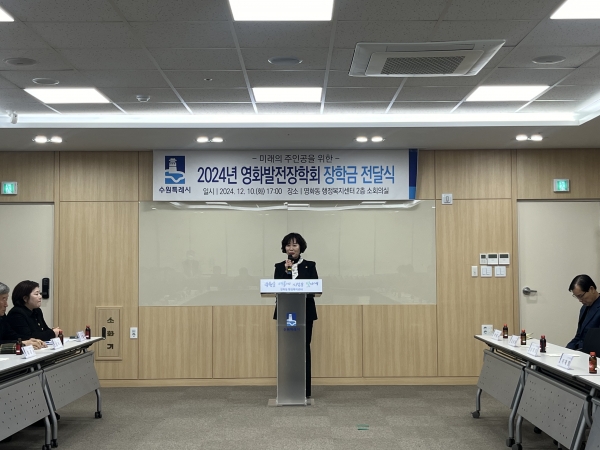 [금요저널] 경기도의회 이채영 의원은 12월 10일 오후 수원 영화동 행정복지센터에서 열린 2024년 영화발전장학회 장학금 전달식에 참석해 학생들을 격려했다.