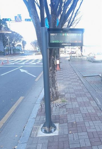 버스정보안내기는 시내버스 도착시간뿐만 아니라 시정홍보, 날씨 및 대기 질정보 등 다양한 생활정보를 제공하는 시스템이다.
