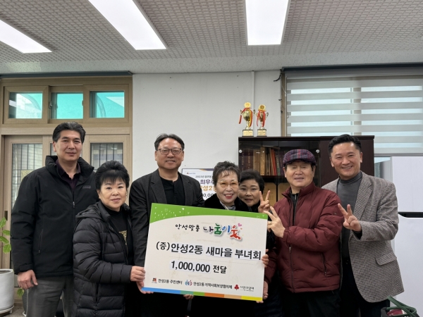 김학재 안성2동장은 “항상 따뜻한 마음과 공동체 의식을 위해 힘 써주는 부녀회의 노고를 알고 있지만, 기부라는 또 다른 사랑의 실천에 감사를 드리며 기탁 받은 성금은 안성2동 저소득층 가구 및 독거 어르신들이 더 행복한 삶을 보낼 수 있도록 안성2동지역사회보장협의체에서 계획하는 나눔활동 및 사업에 쓰일 예정이다”고 밝혔다.