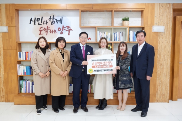 [금요저널] 재단법인 양주시희망장학재단은 13일 오전 시청에서 서부권 모아어린이집 원장들이 뜻을 모아 160만원을 기탁했다고 밝혔다.
