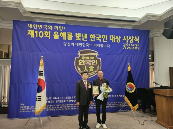 올해를 빛낸 한국인 대상은 국가경제와 지역경제 발전, 일자리 창출 등 사회 전반에 기여한 인물들을 선정해 매년 시상하는 권위 있는 상으로 김완규 의원은 도민의 경제 상황 극복과 지역경제 활성화를 위한 공로를 인정받아 수상자로 선정됐다.