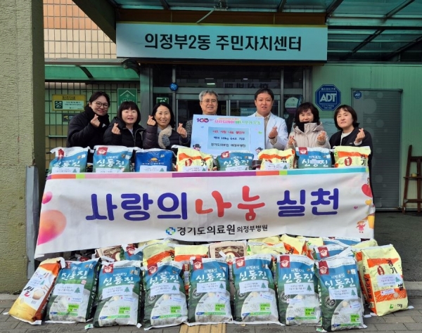 [금요저널] 의정부시 의정부2동주민센터는 12월 17일 경기도의료원 의정부병원이 취약계층을 위한 백미 64포를 전달하며 ‘100일간 사랑릴레이 배턴 잇기’에 동참했다고 밝혔다.