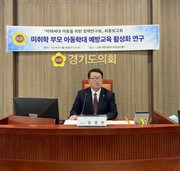 [금요저널] 경기도의회 교육기획위원회 임광현 의원은 18일 상임위 회의실에서 ‘미래세대 아동을 위한 정책연구회’의 정책연구용역 ‘미취학 부모 아동학대 예방교육 활성화 방안 연구’ 최종보고회를 개최했다.