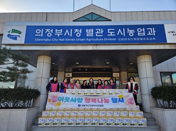 최현미 도시농업과장은 “생활개선회 의정부시연합회가 매년 다양한 방식으로 이웃사랑을 실천하며 더불어 사는 사회 분위기 조성에 앞장서고 있다”며 “이들의 활동이 지역사회에 온기를 전하는 계기가 되길 바란다”고 말했다.