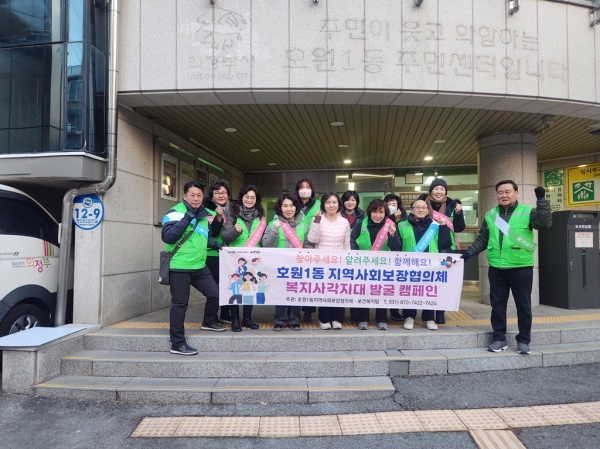 [금요저널] 의정부시 호원1동주민센터는 동절기를 맞아 12월 19일 호원1동 지역사회보장협의체와 함께 ‘복지 사각지대 발굴 홍보 운동’을 실시했다.