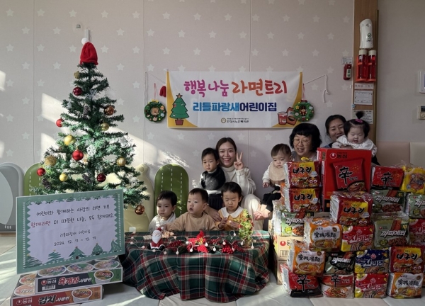안성시노인복지관, 영세아 전용 리틀파랑새어린이집으로부터 ‘행복나눔 라면트리’ 기부받아