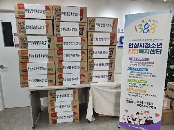 안성농협에서 후원해주신 컵라면을 위기청소년들에게 지원해, 그들이 지역사회의 따뜻한 관심과 사랑을 느끼며 건강하게 성장할 수 있도록 돕게 되어 기쁘고 감사하다“라고 전했다.