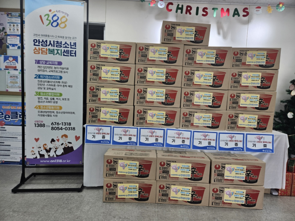 [금요저널] 안성시청소년상담복지센터는 2024년 12월 20일 안성신협으로부터 컵라면 23BOX를 후원받았다.