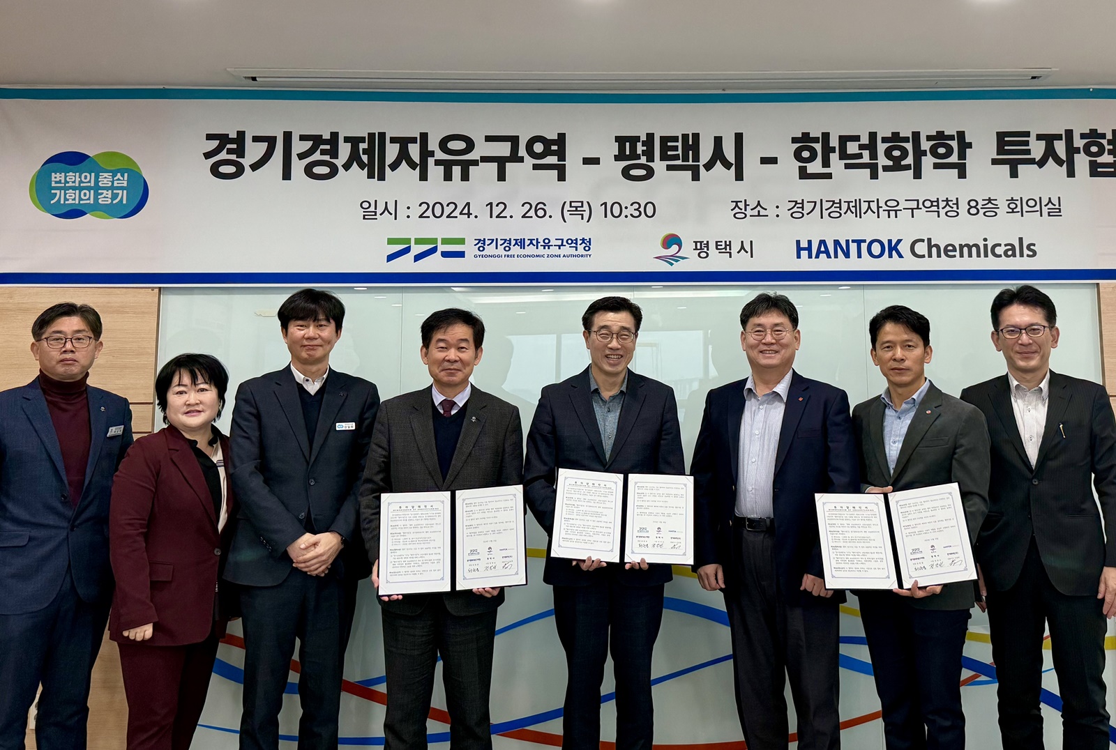 경기경제자유구역청이 평택 포승지구에 1,300억 원이 투자되는 반도체용 첨단소재 생산시설을 유치했다. 반도체·디스플레이용 현상액(TMAH)을 생산하는 한덕화학이 평택 포승지구에 수도권 생산거점을 조성하기로 한 것이다.