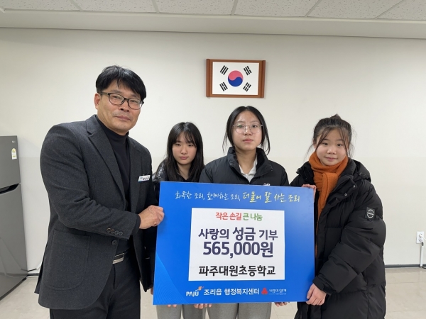 [금요저널] 파주시 조리읍은 파주대원초등학교 어린이들이 지난 한마음 알뜰장터를 통해 마련한 수익금 56만 5,000원을 기탁했다고 밝혔다.