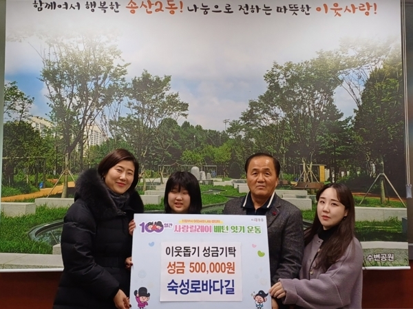 송산2동, ‘숙성로바다길’ 100일간 사랑릴레이 성금 50만원 기탁