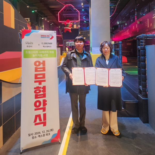 [금요저널] 오산시는 지난 26일 엑스원 파크와 함께 드림스타트 놀이지원사업을 위한 업무협약을 체결했다.