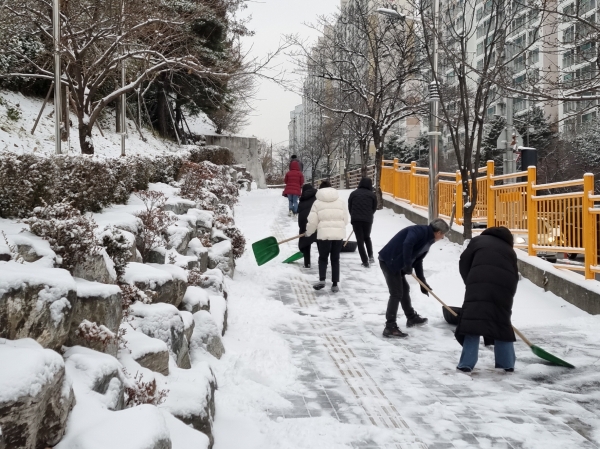 또한, 인창동 기간단체 회원들로 구성된 제설 자원봉사단인 ‘겨울길 봉사단’ 20여명이 합심해 시민들이 오가는 인도, 버스정류장과 경사진 언덕길의 눈을 집중적으로 치우며 시민들의 통행로 확보를 위해 구슬땀을 흘렸다.