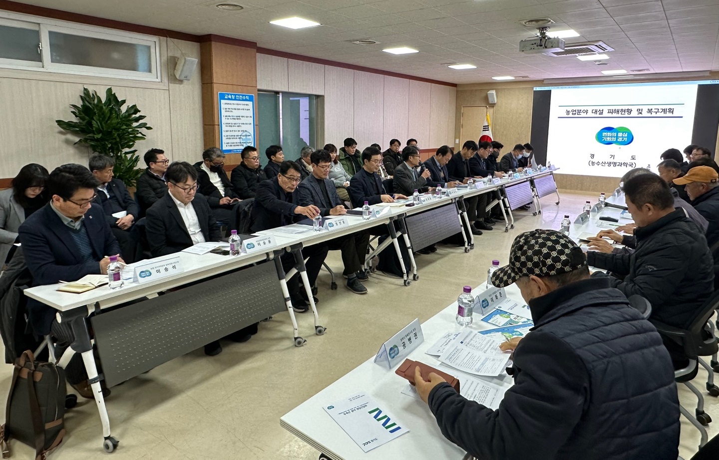 경기도는 9일 안성시 농업기술센터 생활과학관에서 박종민 농수산생명과학국장 주재로 ‘농·축산 분야 현장 간담회’를 열고 대설 피해로 인한 농·축산 분야의 고충을 듣고 실질적인 지원 방안을 논의했다. 이번 간담회는 지난달 12일 열린 ‘경기 비상민생경제회의’ 후속 조치로 마련됐다.