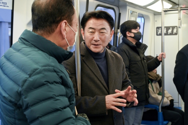 이동 중 경전철에 승차한 시민들과 자유롭게 대화를 나누며 교통 문제와 시정에 대한 다양한 의견을 청취했다.