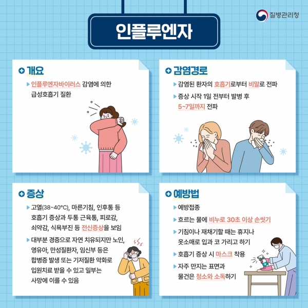 인플루엔자 예방을 위해 시민들은 △기침 예절 실천 △올바른 손씻기 생활화 △실내 자주 환기하기 △어린이·임신부, 65세 이상 고령층 등 예방접종 실시 △발열 및 호흡기 증상 시 의료기관 방문 등 예방 수칙을 철저히 지켜야 한다.