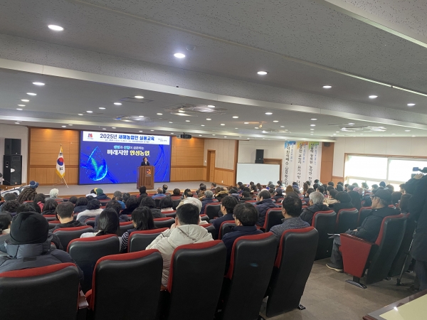 2025년 새해농업인 실용교육은 1월 15일부터 22일까지 6일간 교육이 진행되며 이번 15일 교육에는 농정시책 160명, 토양관리 100명 등 계획인원을 200% 이상 뛰어넘는 교육생들이 참석할 정도로 열기가 뜨거웠다.