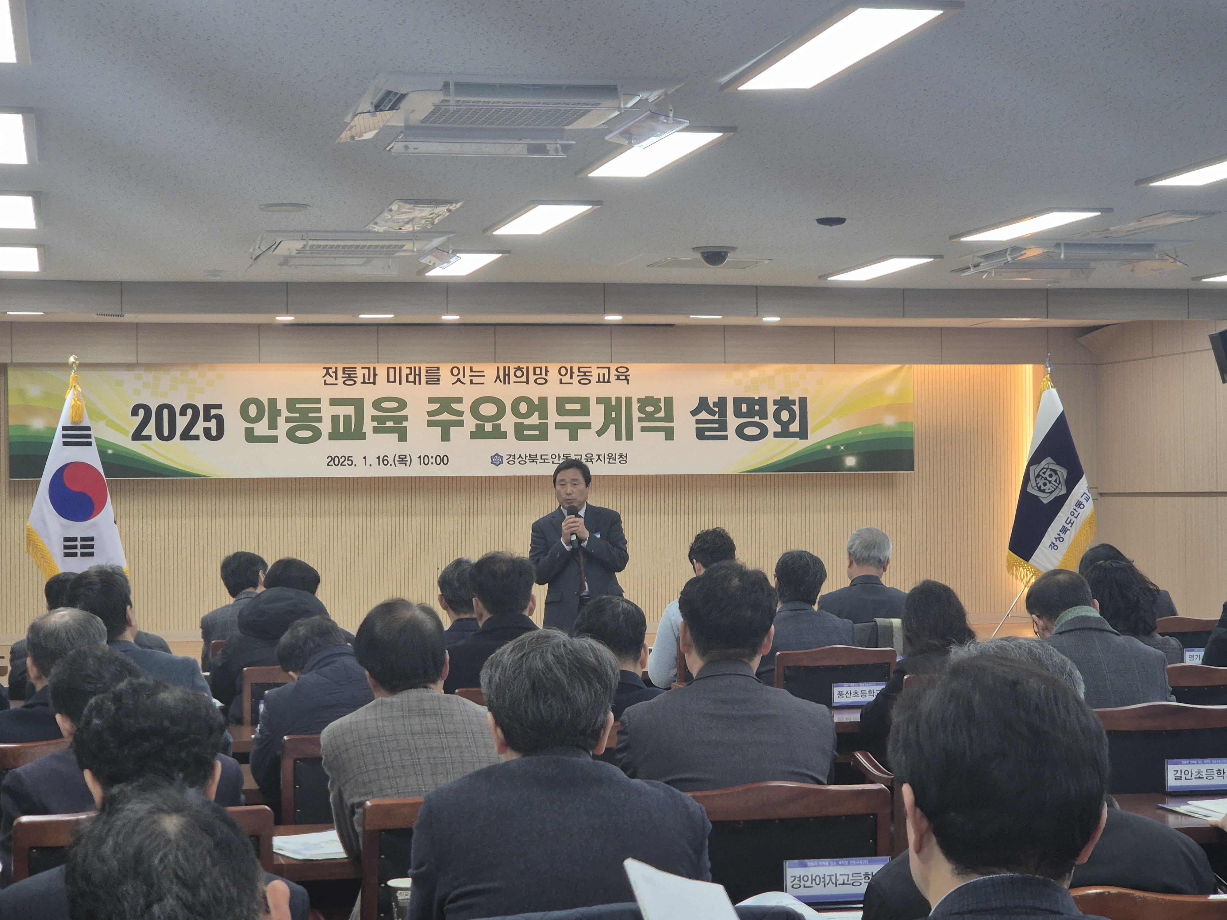 경상북도안동교육지원청(교육장 안중환)은 1월 16일 관내 유․초․중․고․특수학교 교(원)장 68명을 대상으로 ‘2025 안동교육계획 설명회’를 개최하였다.