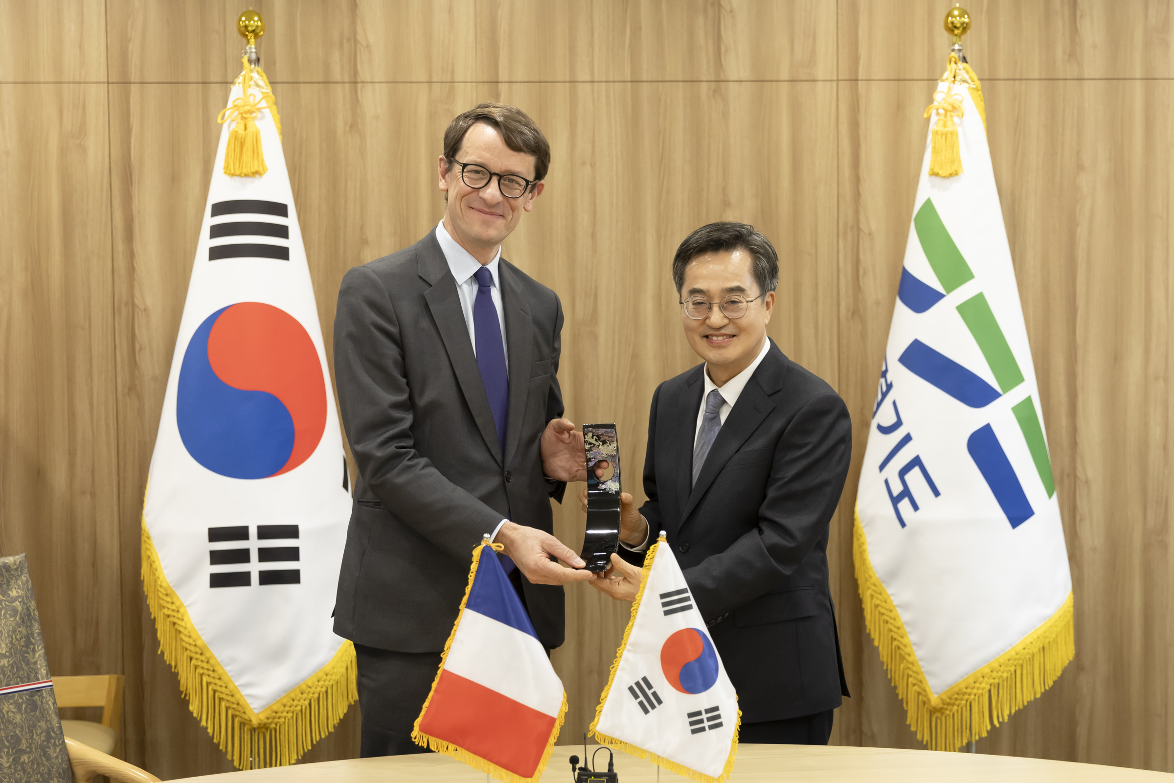 김동연 경기도지사는 16일 경기도청에서 필립 베르투(Philippe Bertoux) 주한 프랑스대사와 면담을 갖고 한-프랑스 수교 140주년을 앞두고 경기도와 프랑스 간 반도체, 인공지능(AI), 스타트업 분야의 협력 방안을 논의했다. 2026년은 한-프랑스 수교 140주년이 되는 해다.