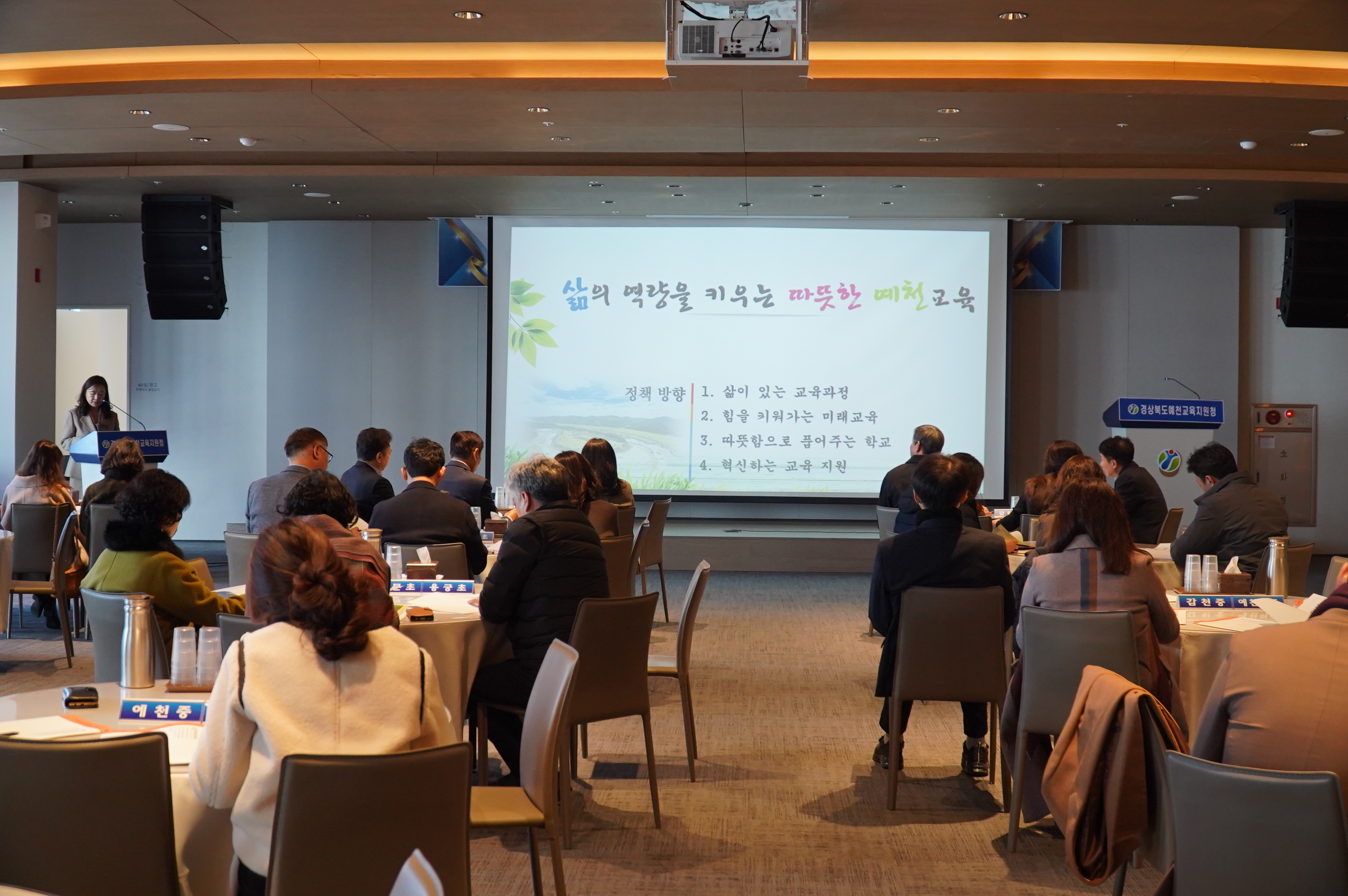 경상북도예천교육지원청(교육장 이창희)은 1월 17일(금) 오전 11시 예천군의 교(원)장, 학교운영위원장, 학부모회장 등 90여 명이 참석한 가운데 ‘2025 예천교육 설명회’를 개최하였다. 이번 행사는 개회식, 내빈 소개, 직원 소개, 예천교육 안내, 간담회 순으로 진행되었다.