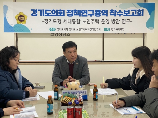 [금요저널] 경기도의회 교육기획위원회 이택수 의원은 20일 경기도의회 고양상담소에서 ‘경기도 노인주거복지정책 연구회’의 연구활동을 위해 ‘경기도형 세대통합 노인주택 운영방안 연구’ 착수보고회를 개최했다.