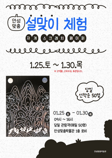 이번 행사는 1월 25일부터 30일까지 진행되며 매일 선착순 50명에게 ‘자개 스크래치 페이퍼 액자 만들기’ 체험을 무료로 제공한다.